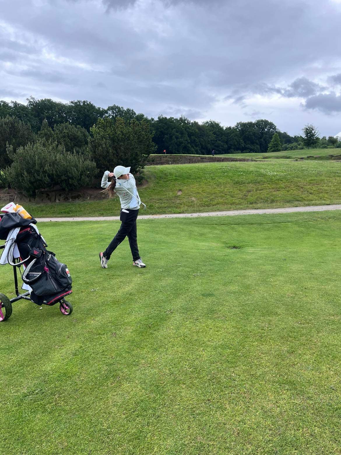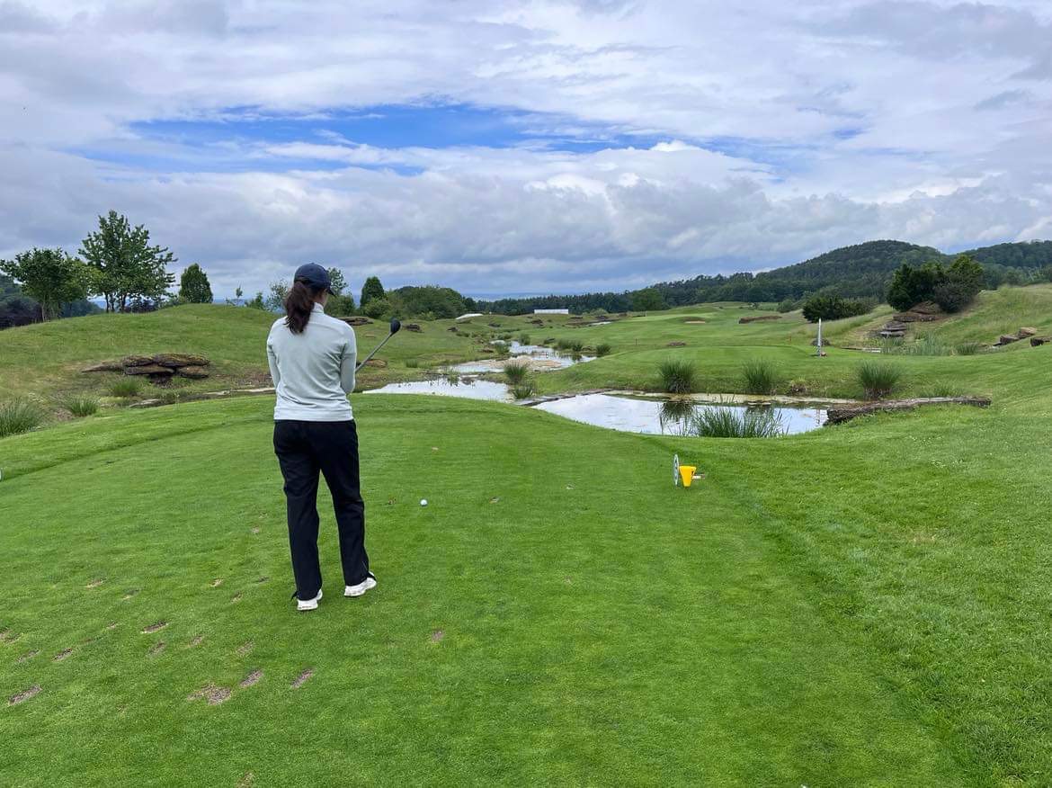 Generalnie pole trudne! Długie, w szczególności par 3, za to bardzo urokliwe. Greeny super przygotowane, bardzo małe i mocno pofałdowane natomiast dość wolne jak na standardy tego typu turnieju. Pogoda bardzo deszczowa – kropiło albo lało. Mimo to jesteśmy dobrze nastawieni, a dziewczęta będą walczyć nie tylko z polem, ale z pogodą – krótko relacjonował w środę trener.