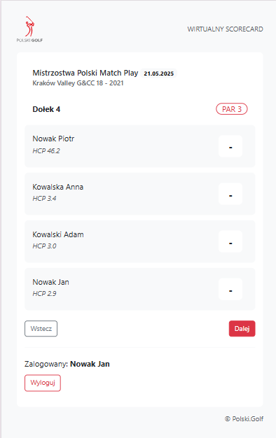 Przed rozpoczęciem turnieju dyrektor danych zawodów wyśle link do wszystkich osób na liście zakwalifikowanych, kierujący do indywidualnych scorecardów dla danego flightu. Do jego pobrania nie będzie konieczna żadna aplikacja ani Konto Golfisty PZG.